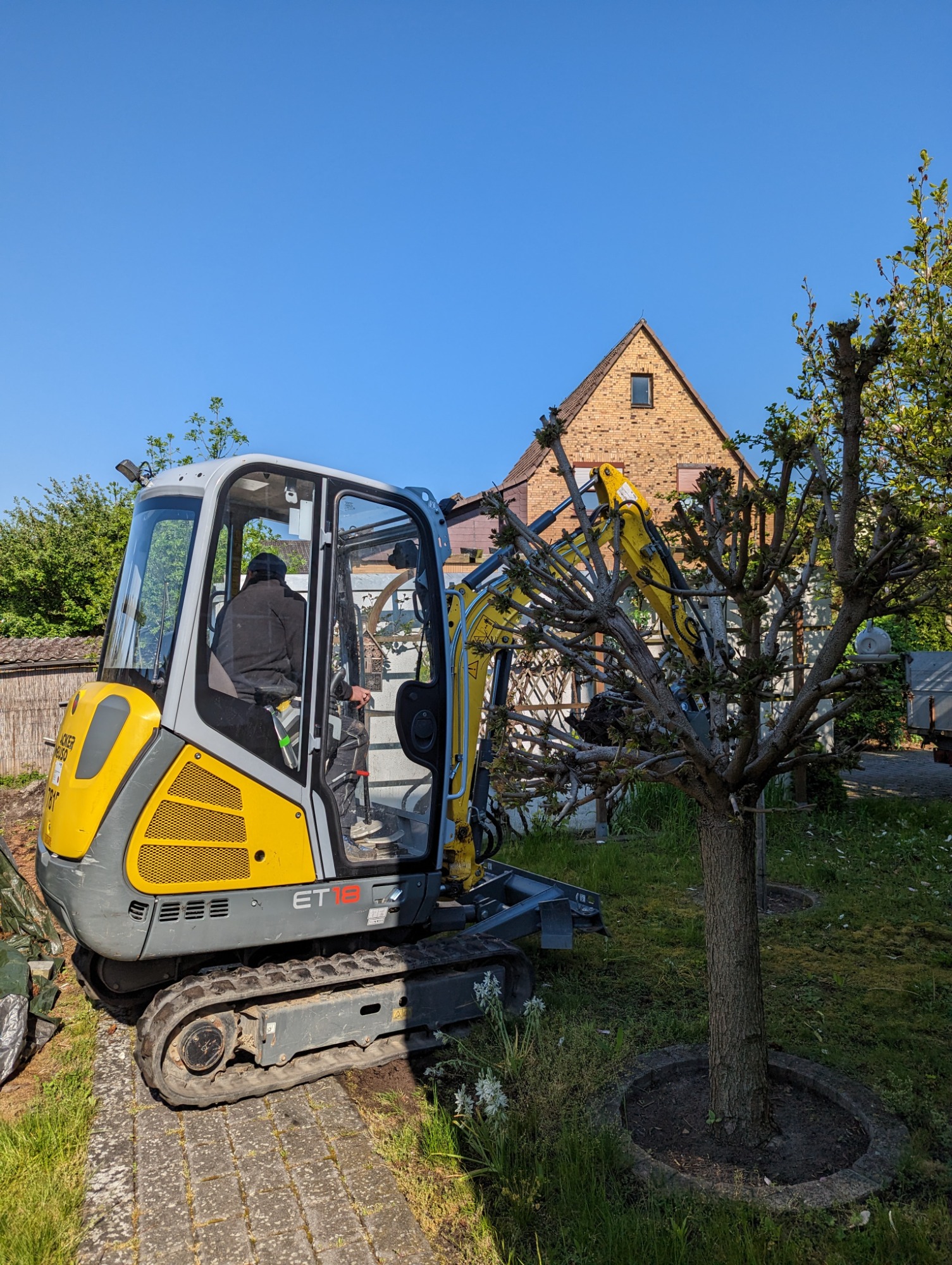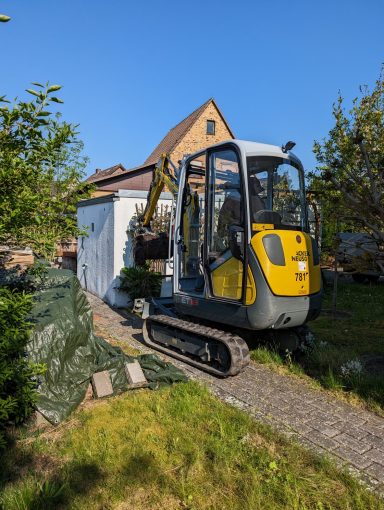 Ausheben eines alten Beetes mit einem gemieteten Minibagger